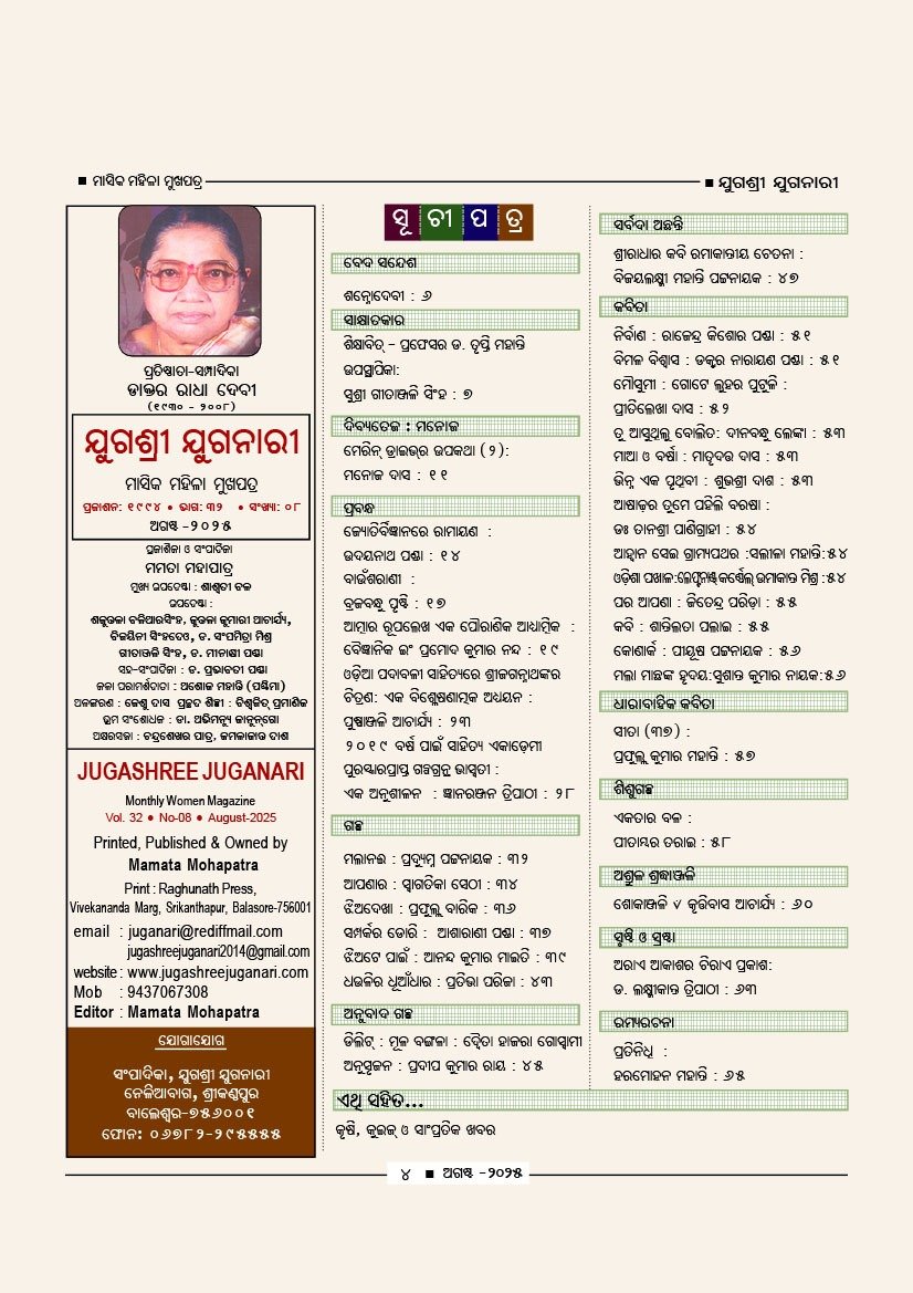 / Jugashree Juganari Monthly Magazine – August 2025