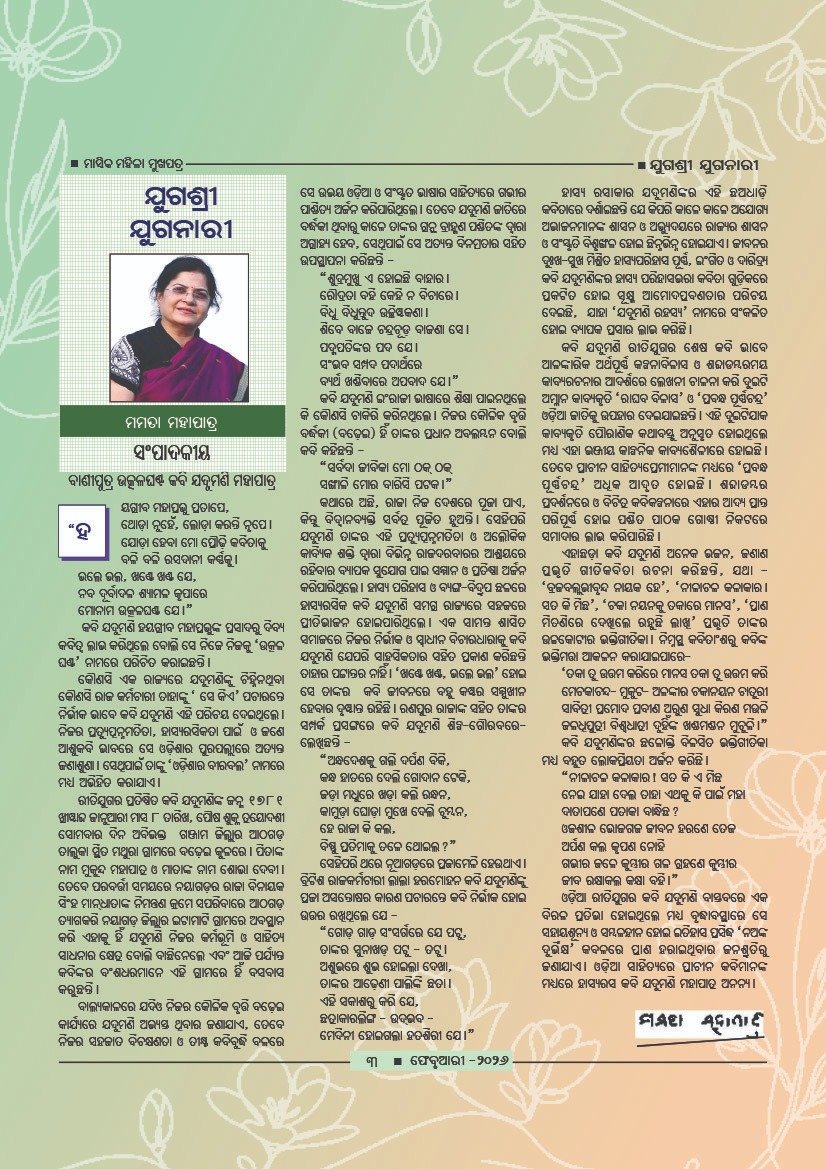 ମମତା ମହାପାତ୍ର, ସମ୍ପାଦିକା 🙏