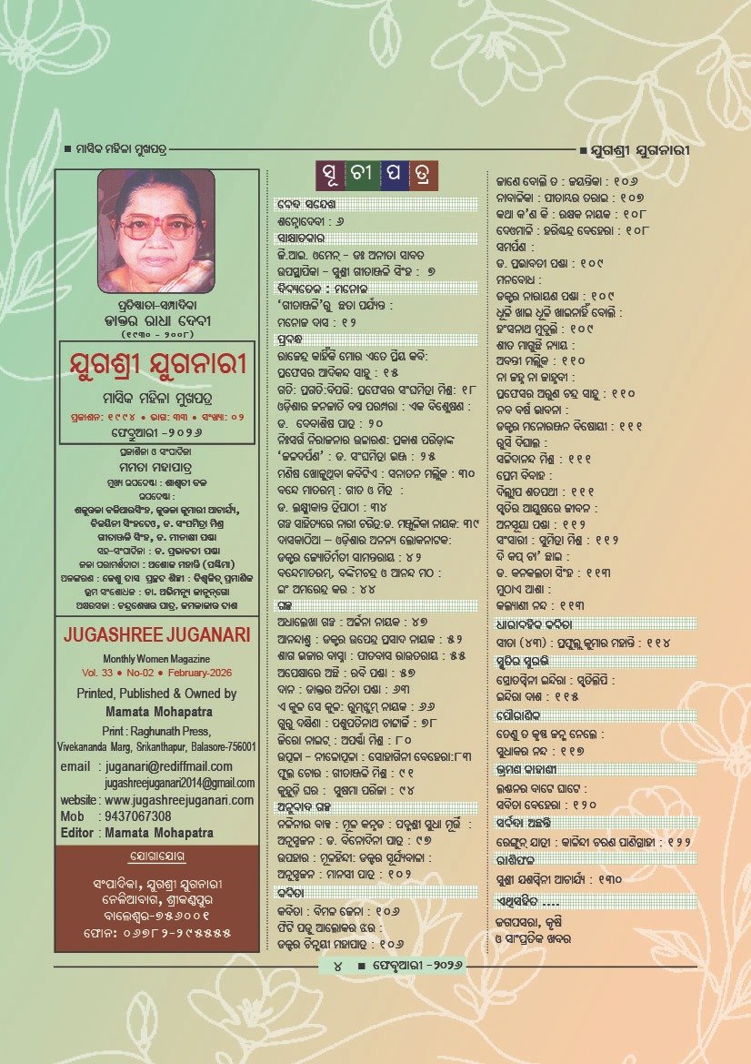 / Jugashree Juganari Monthly Magazine – February, 2026.