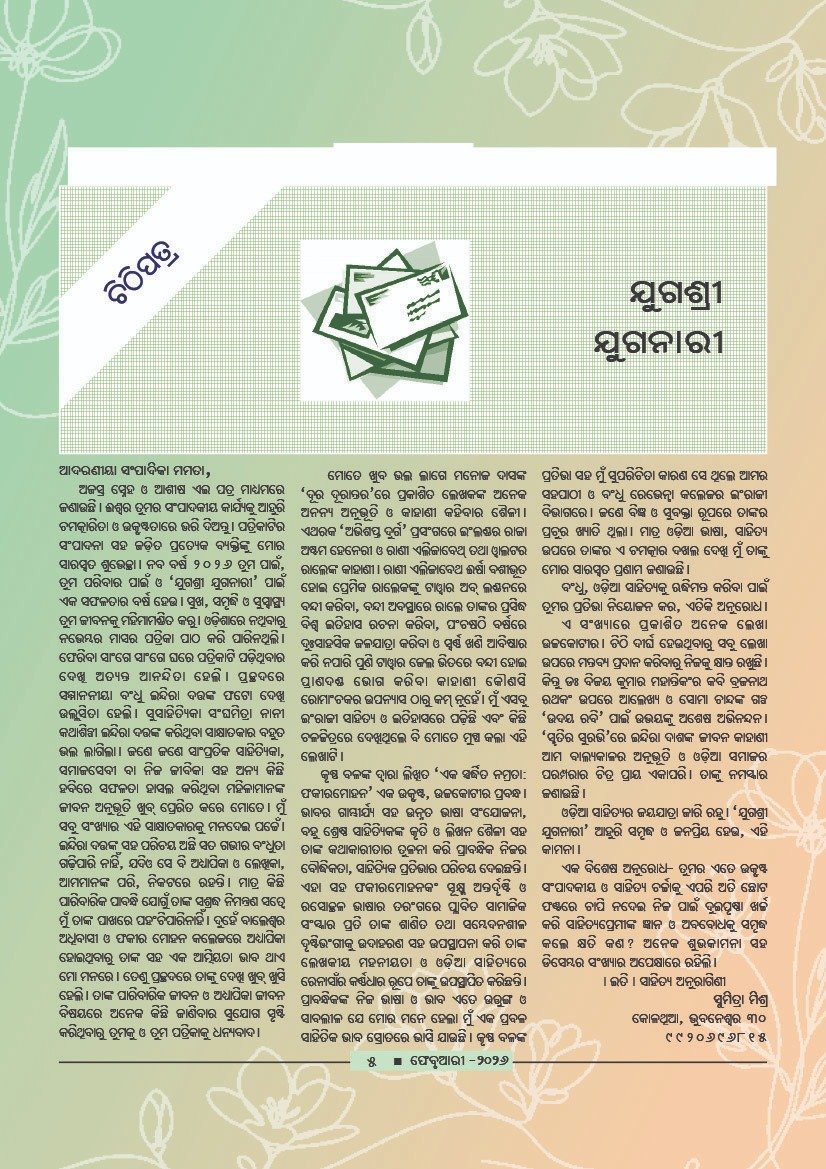 ଯୁଗଶ୍ରୀ ଯୁଗନାରୀ ପରିବାର ପକ୍ଷରୁ ତାଙ୍କୁ ଅନେକ ଅଭିନନ୍ଦନ