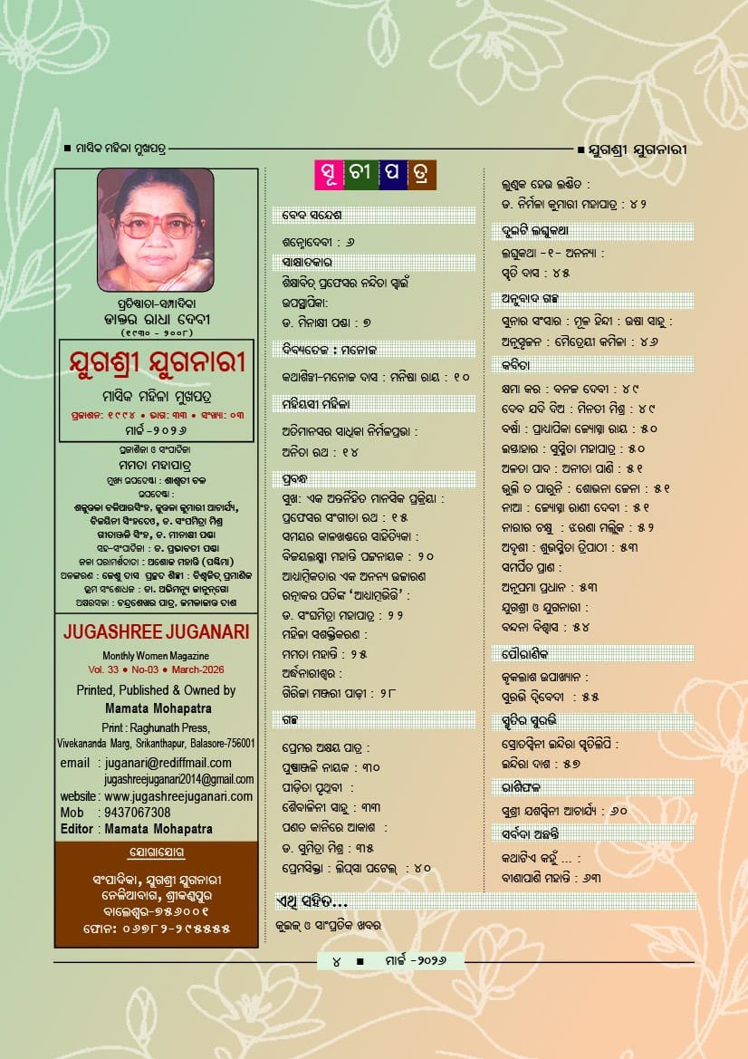 / Jugashree Juganari Monthly Magazine – March, 2026.