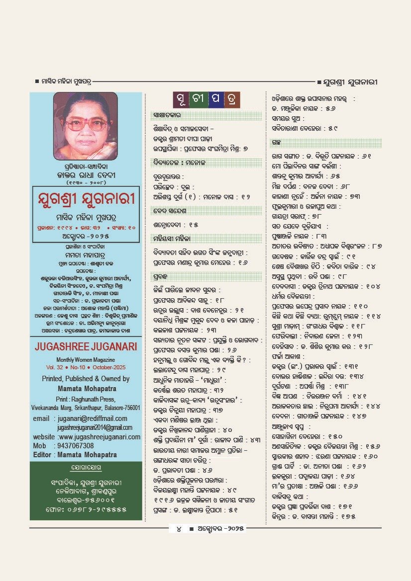 / Jugashree Juganari Monthly Magazine – October 2025