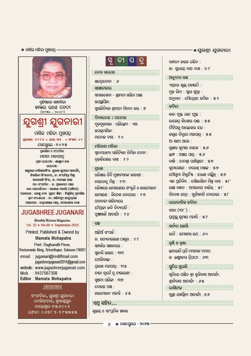 / Jugashree Juganari Monthly Magazine – September 2025
