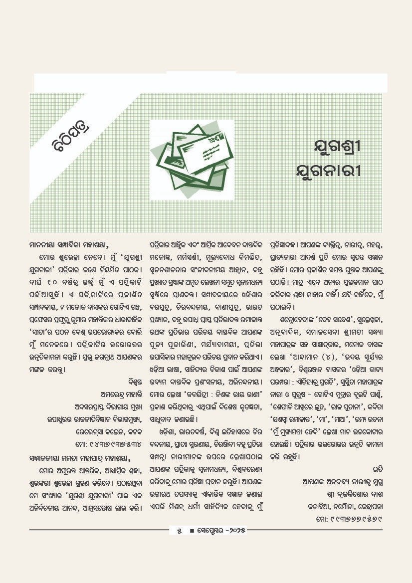 ଯୁଗଶ୍ରୀ ଯୁଗନାରୀ ପରିବାର ପକ୍ଷରୁ ତାଙ୍କୁ ଅନେକ ଅଭିନନ୍ଦନ ।